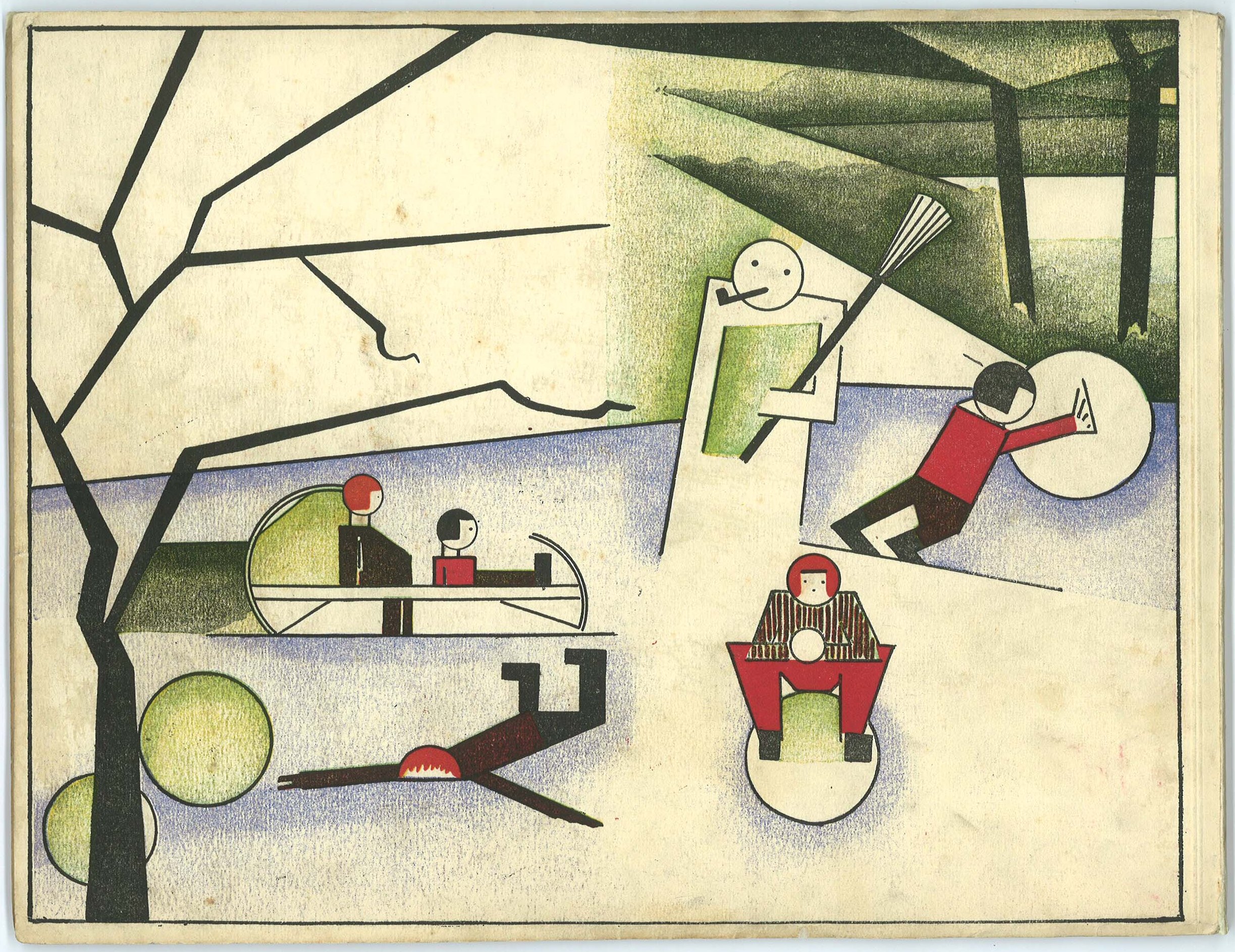 First edition. The only children's book produced by a member of the Belgian avant-garde, with rightly famous modernist illustrations. Here, 'children's joy' certainly becomes adult's pleasure, the enthusiasm of the avant-garde's first years coinciding with the colourful world as seen by 'innocent' eyes. Difficult to find (a children's book!) in as fine condition as this copy.