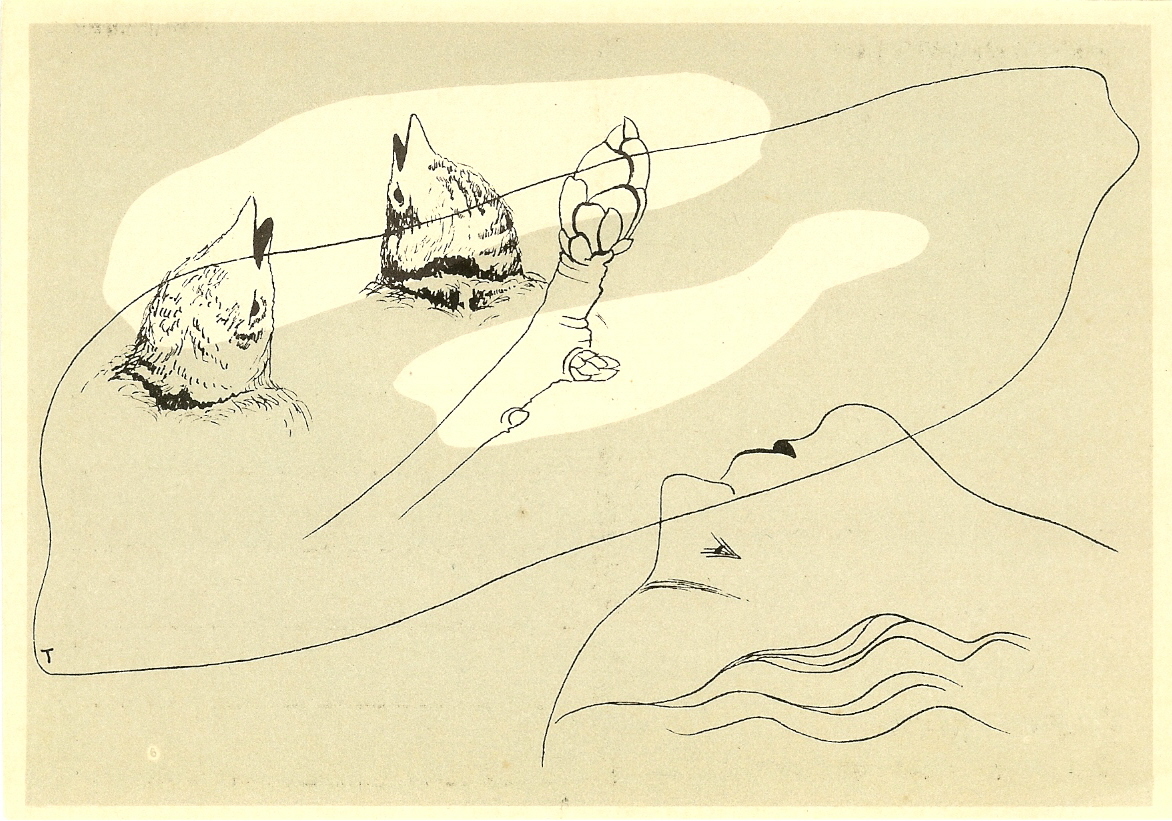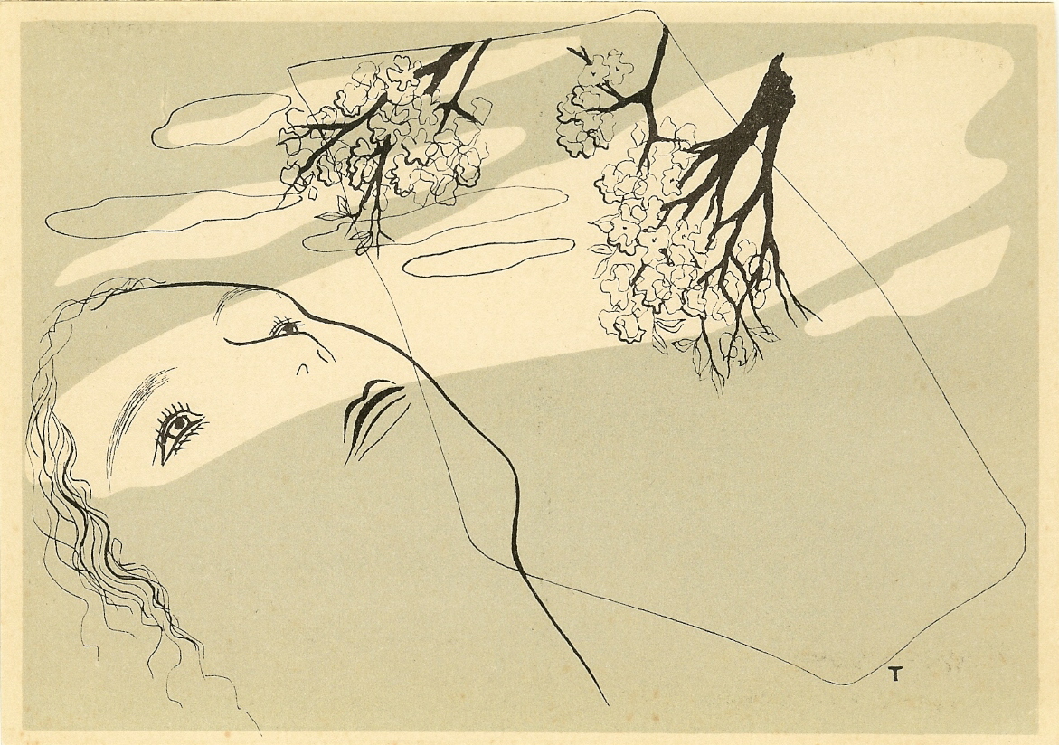 Toyen made two sets of elegant postcards, one inspired by the theme of "Winter", published in 1935, and this series titled "Spring"